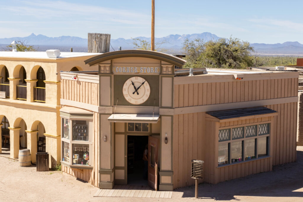 Our quaint Corner Store is stocked with Old Tucson souvenirs, gifts and keepsakes, and seasonal event merchandise and is open during regular PARK HOURS.